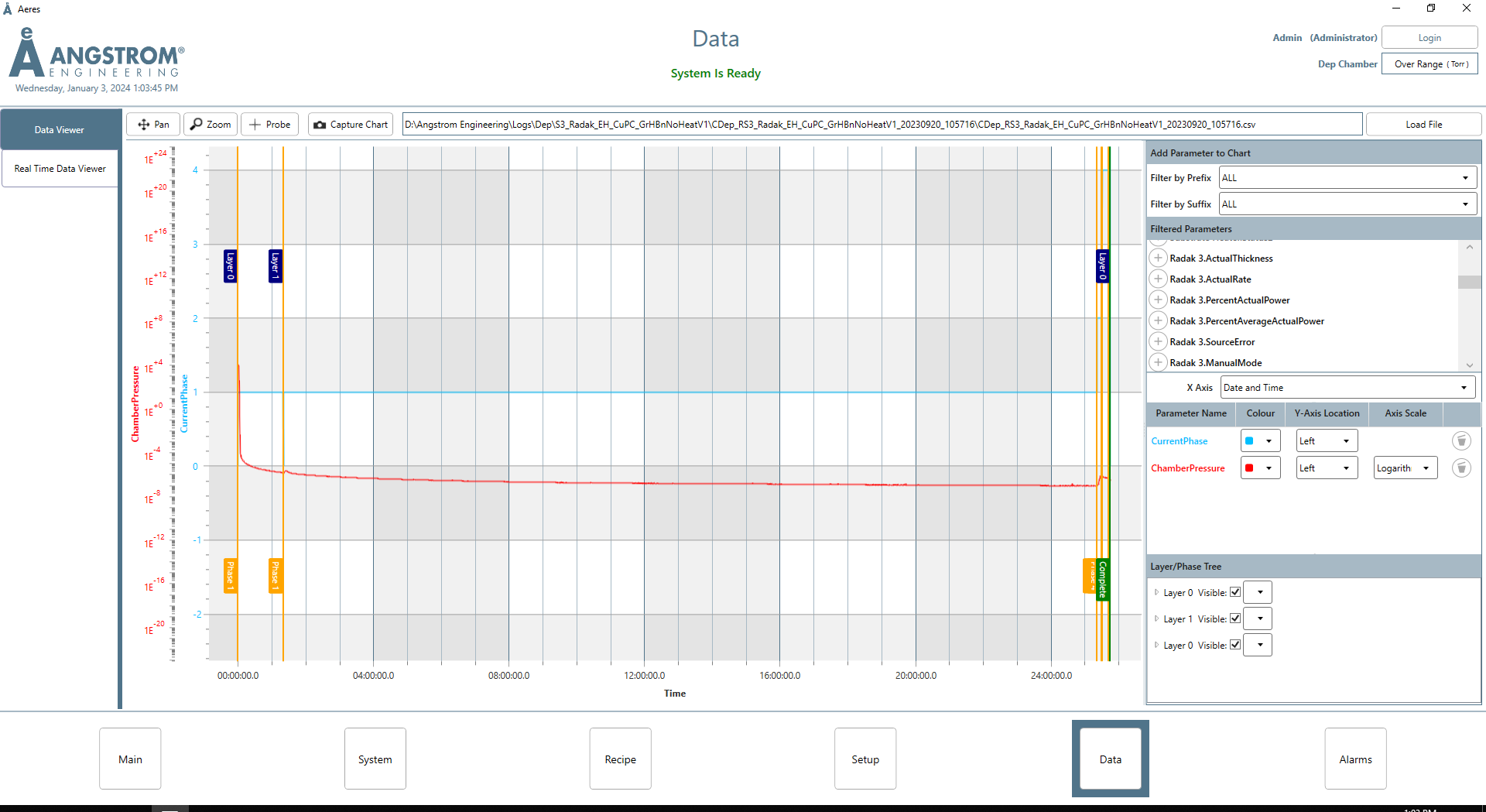 - All data can be loaded post-deposition in the “Data Viewer” tab in the “Data” chiclet. Click “Load File” in the upper right and select the deposition file in the file explorer.